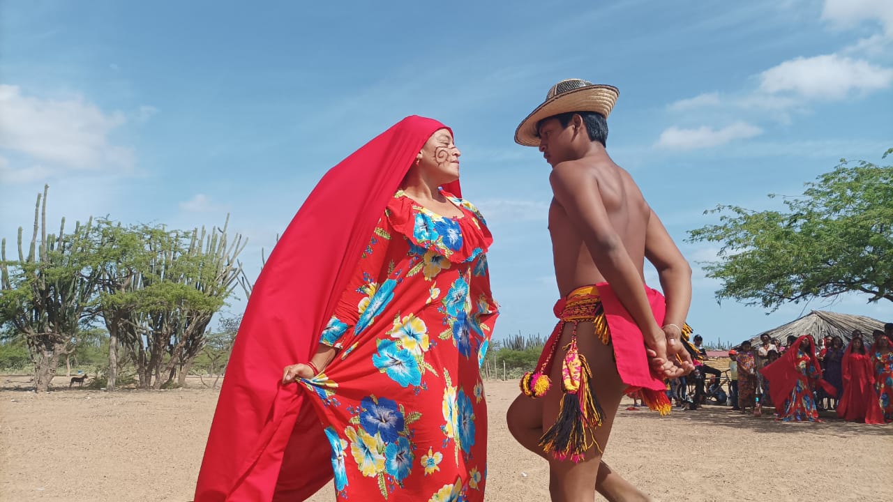 Obra: Danzantes del Viento. Es una puesta en escena a partir de la danza, la música y la palabra, basada en prácticas ancestrales de las comunidades wayúu y gunadule, pueblos originarios del Caribe colombo-venezolano y colombo- panameño.
