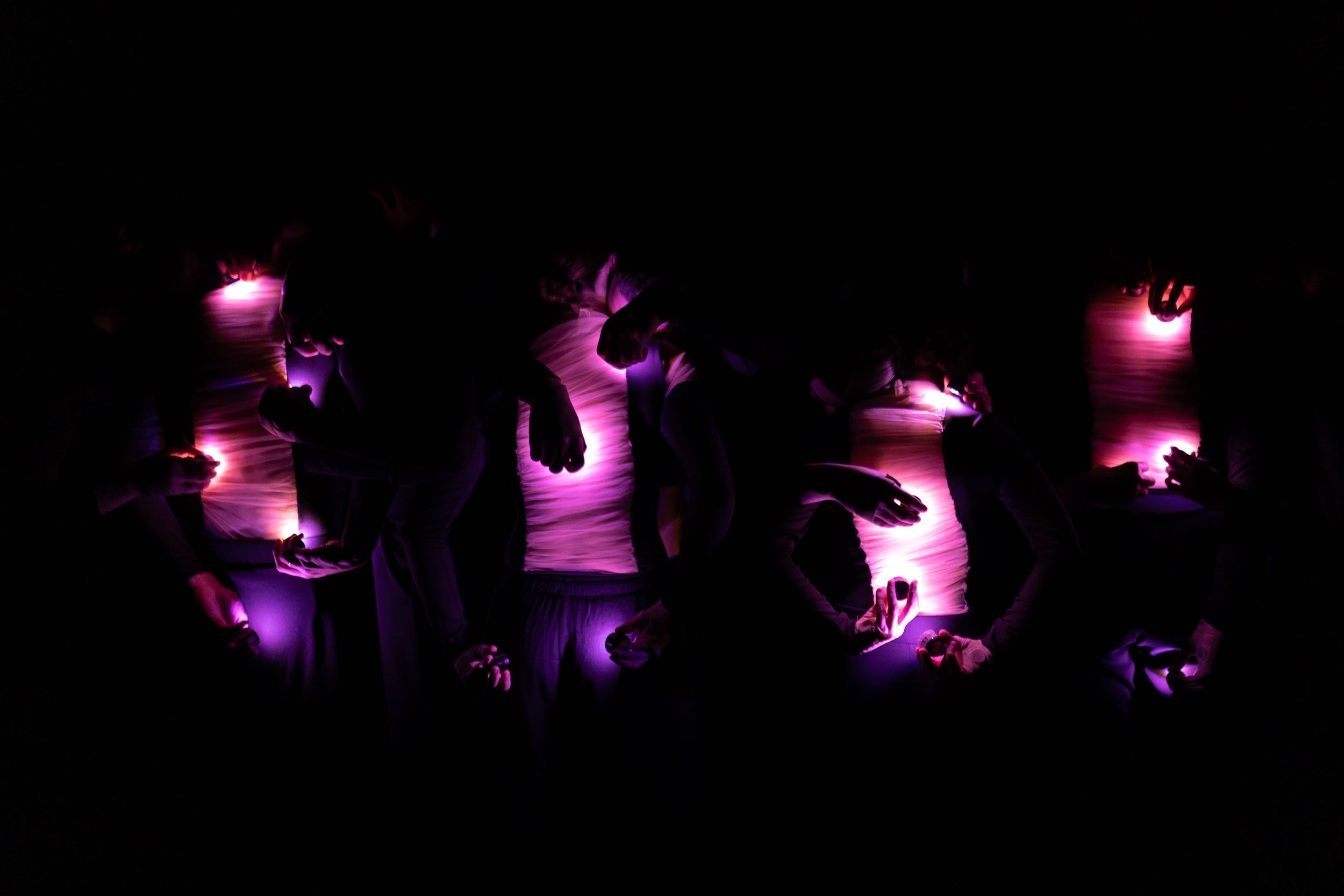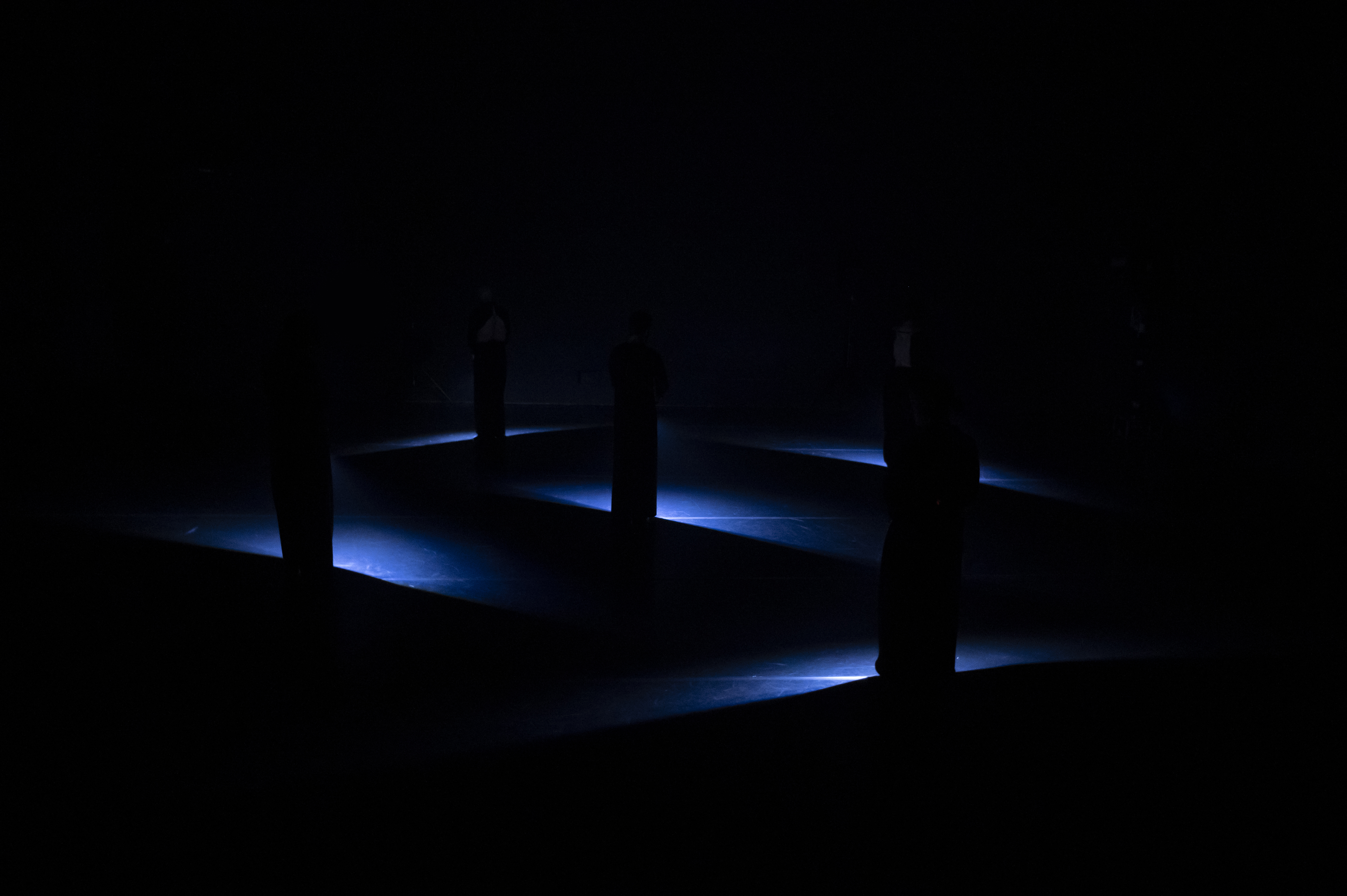A Beginning 16161D. Es un viaje de la oscuridad a la luz. Exploran la relación entre el movimiento, la voz y la luz.